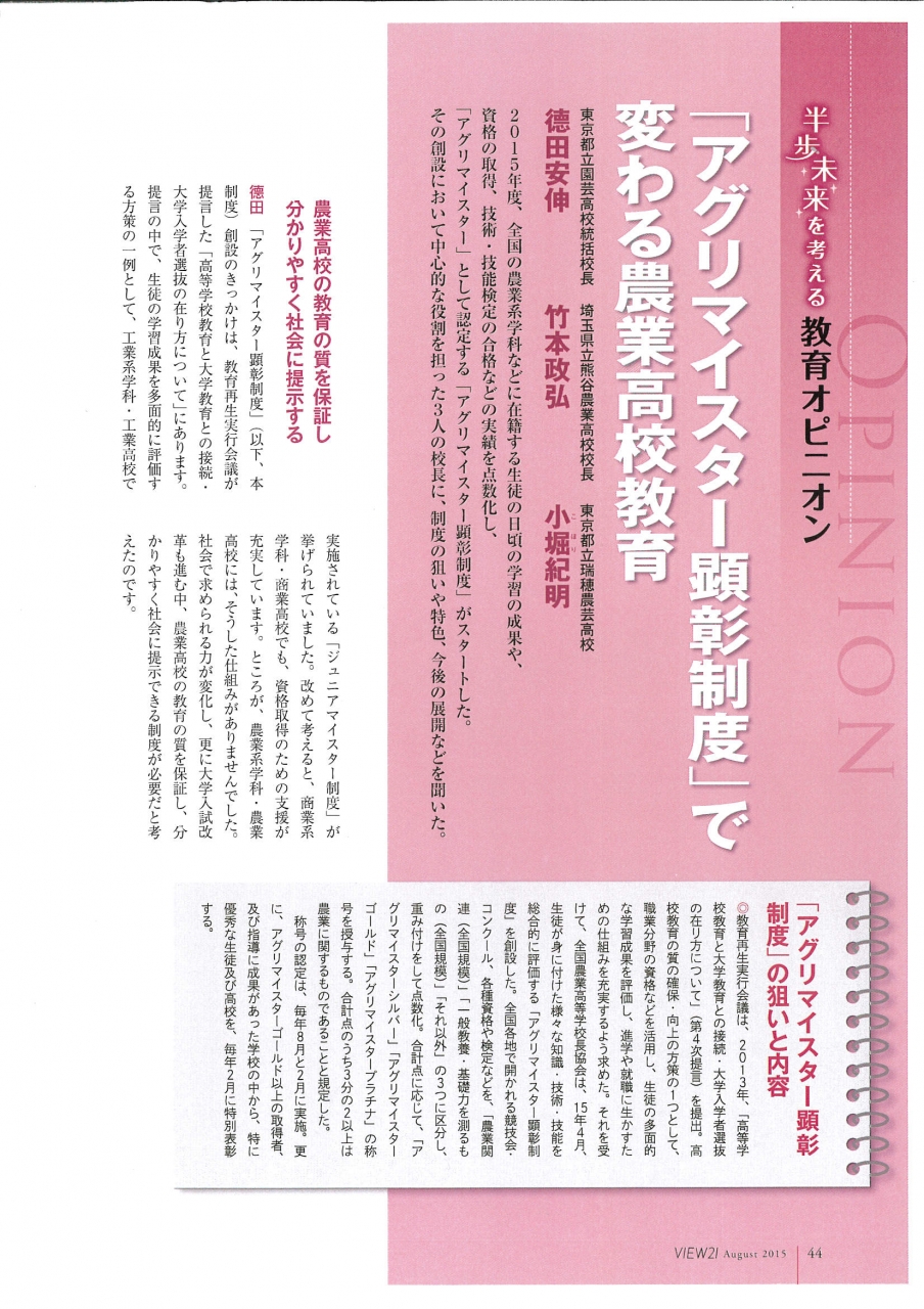 ベネッセ「ビュー21」8月号に、本アグリマイスター顕彰制度に関する特集が組まれました。